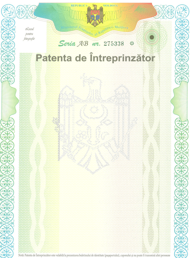 este un certificat de stat nominativ, ce atesta dreptul de a desfăşura genul de activitate de întreprinzător indicat în ea în decursul unei anumite perioade de timp.
