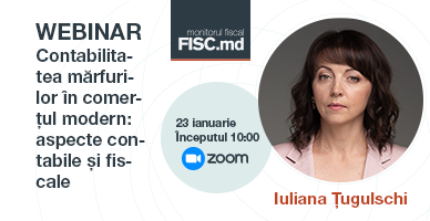 Contabilitatea mărfurilor în comerțul modern se axează pe gestionarea eficientă a stocurilor (achiziție, evaluare, vânzare) în acest sens P.P. „Monitorul fiscal FISC.MD” organizează un webinar...