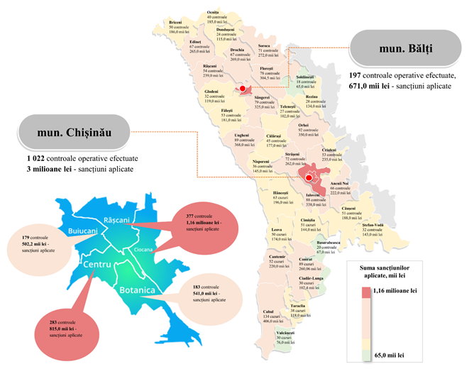 Din totalul controalelor operative efectuate, în 2 232 cazuri au fost stabilite încălcări, ceea ce reprezintă 72% din numărul acestora.